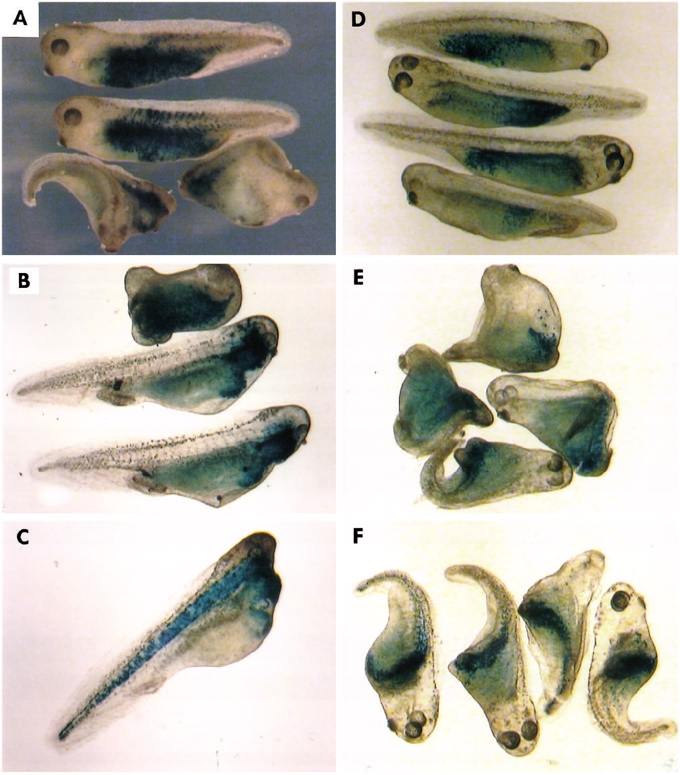 days of development embryos were fixed, and stained for b-gal activity. (A) Normal embryos were injected at the 8- to 16-cell stage into a