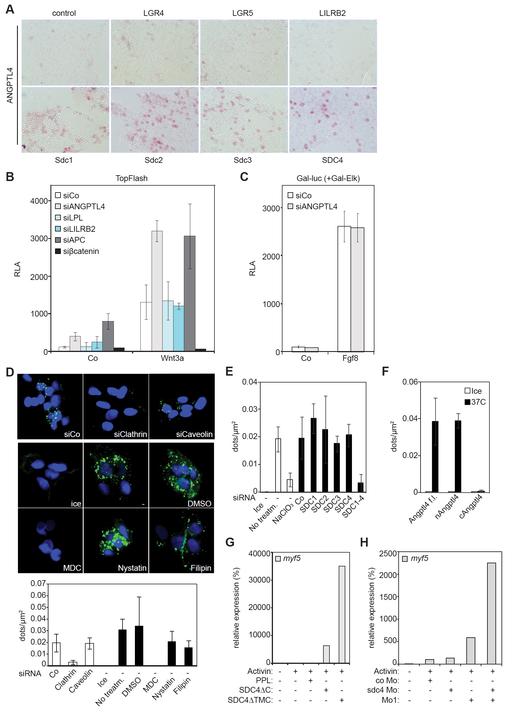 Figure S4, related to Figure 4. ANGPTL4 binds syndecans and is internalized by clathrin-dependent endocytosis.