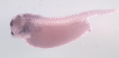 gabrg2 (gamma-aminobutyric acid (GABA) A receptor, gamma 2) gene expression in X. laevis embryo, assayed via in situ hybridization, NF stage 35 & 36, lateral view, anterior left, dorsal up. Copyright © Perron Lab