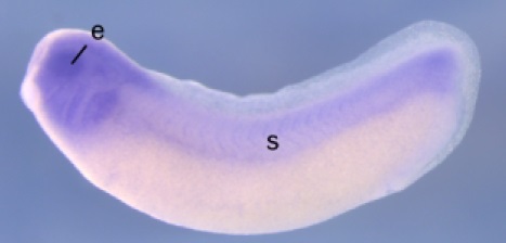 kmt2d ( lysine methyltransferase 2D ) gene expression in Xenopus laevis embryo, assayed via in situ hybridization, NF stage 28, lateral view, anterior left, dorsal up. This image is extracted from figure published in: Schwenty-Lara J et al. (2019), Image published in: Schwenty-Lara J et al. (2019) Copyright © 2019. Image reproduced with permission of the Publisher, John Wiley & Sons.