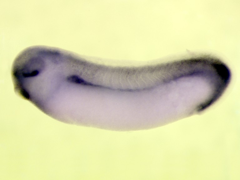 Xenopus laevis, stage 29&30 embryo, lateral view, in situ hybridization with Probe matching to: myo1d gene Copyright © CNRS UMR 8080, Nicolas Pollet Image published in: AXELDB Database, AxelDB (Image Pages)