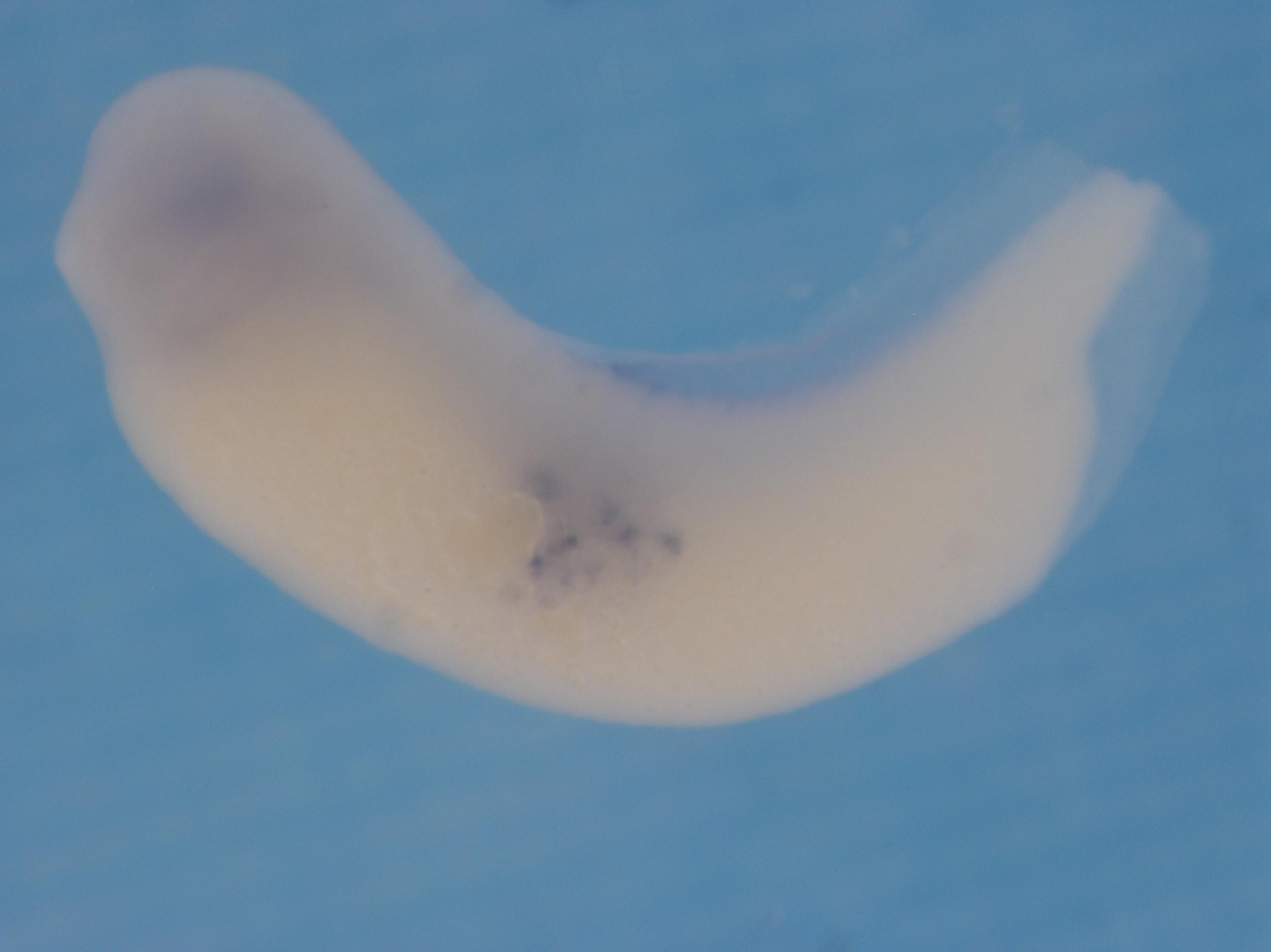 Larger Image ddx25 (DEAD (Asp-Glu-Ala-Asp) box helicase 25) gene expression in Xenopus laevis embryos, NF stage 32, as assayed by in situ hybridization, lateral view, anterior left, dorsal up. Image copyrighted by EXRC.