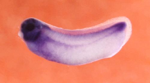 | rb1 (retinoblastoma 1) gene expression in Xenopus laevis embryo, assayed via in situ hybridization, NF stage 31, lateral view, anterior left, dorsal up. Copyright © Patient Lab Image created by: Aldo Ciau-Uitz