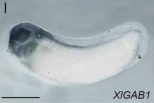 Larger Image gab1 (GRB2 associated binding protein 1) gene expression in Xenopus laevis embryo, assayed via in situ hybridization, NF stage 32, lateral view, anterior left, dorsal up. This image is extracted from figure published in: Chen Y et al. (2011), Image published in: Chen Y et al. (2011) Copyright © 2011. Image reproduced with permission of the Publisher, Elsevier B. V.