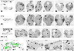 Figure 6. Schematic diagrams showing the rostrocaudal distribution of Meis-2ir in the adult brain. In all diagrams, dorsal is oriented upward. The main subdivisions are indicated by dashed lines. The approximate levels are indicated in the upper sagittal scheme. See the list for abbreviations.