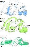Figure 9. (a) Sagittal schematic diagrams representing the distribution of Meis1 (blue), (b) Meis2 (green), and Meis3 (dark green lines) in the mouse postnatal brain (Allen brain), compared to the distribution of Meis2-ir in the Xenopus brain (c). In all diagrams, dorsal is oriented upward and rostral is oriented to the left. The main subdivisions are indicated by thin lines. See the list for abbreviations.