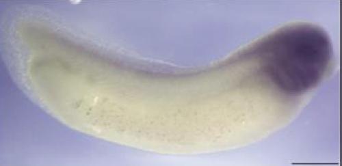 wdr5 (WD repeat domain 5) gene expression in X. laevis embryo, NF stage 11, assayed via in situ hybridization.