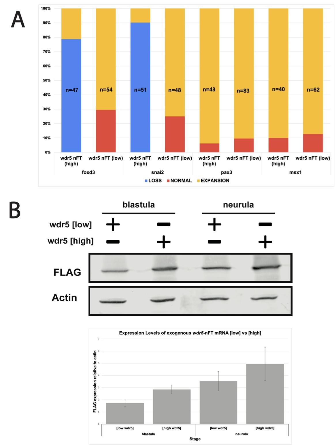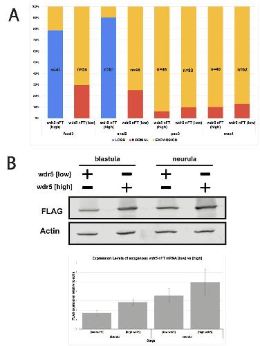 wdr5 nFT injected embryos (low vs high dose). (B) Western blot and quantification of