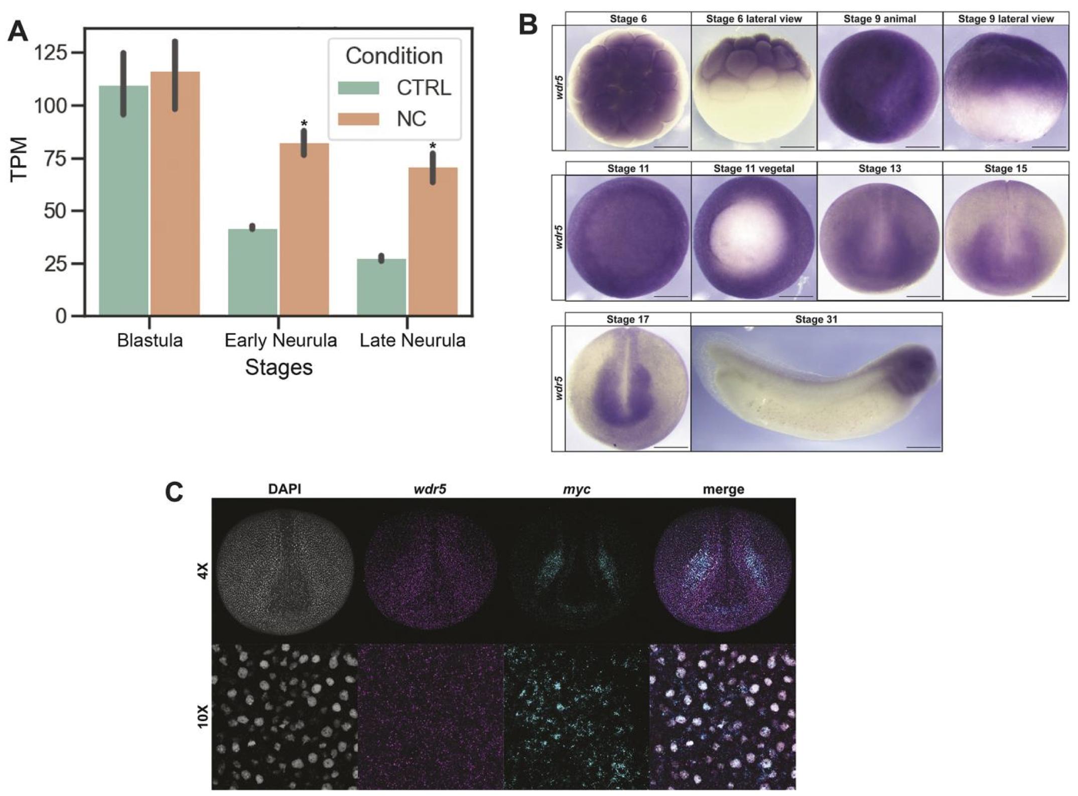 late neurula stages. (p < 0.05) (B) Spatial and temporal expression of wdr5 shows that wdr5