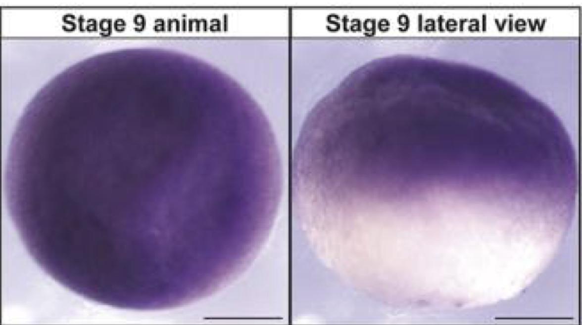 wdr5 (WD repeat domain 5) gene expression in X. laevis embryo, NF stage 9, assayed via in situ hybridization.