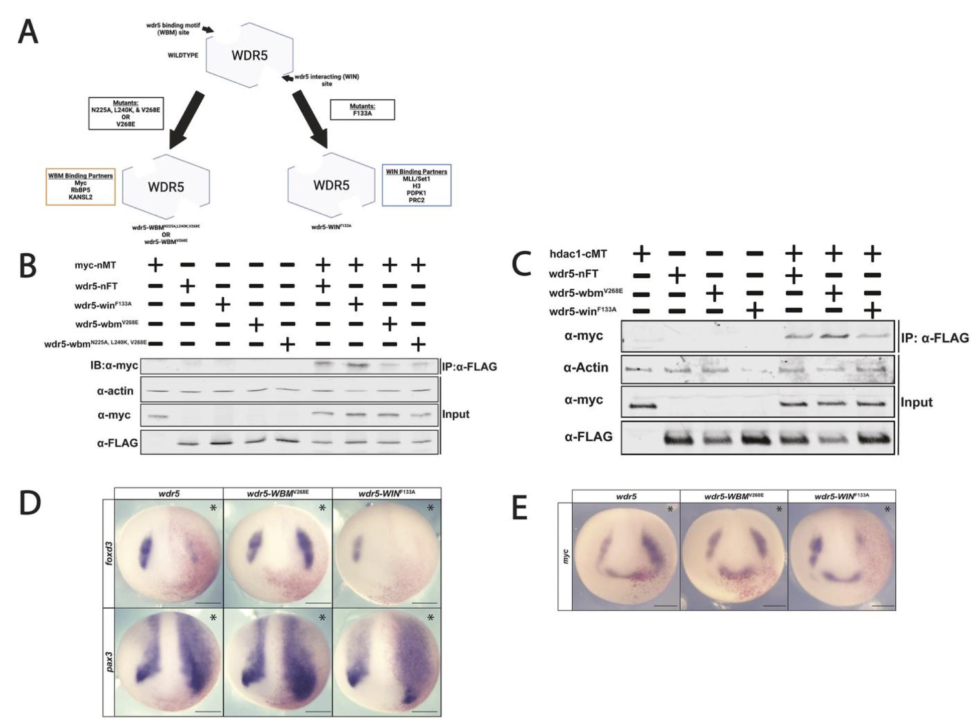 of myc to wdr5-WBMV268 and wdr5-WBMN225A,L240K,V268E in Xenopus embryos. (C)