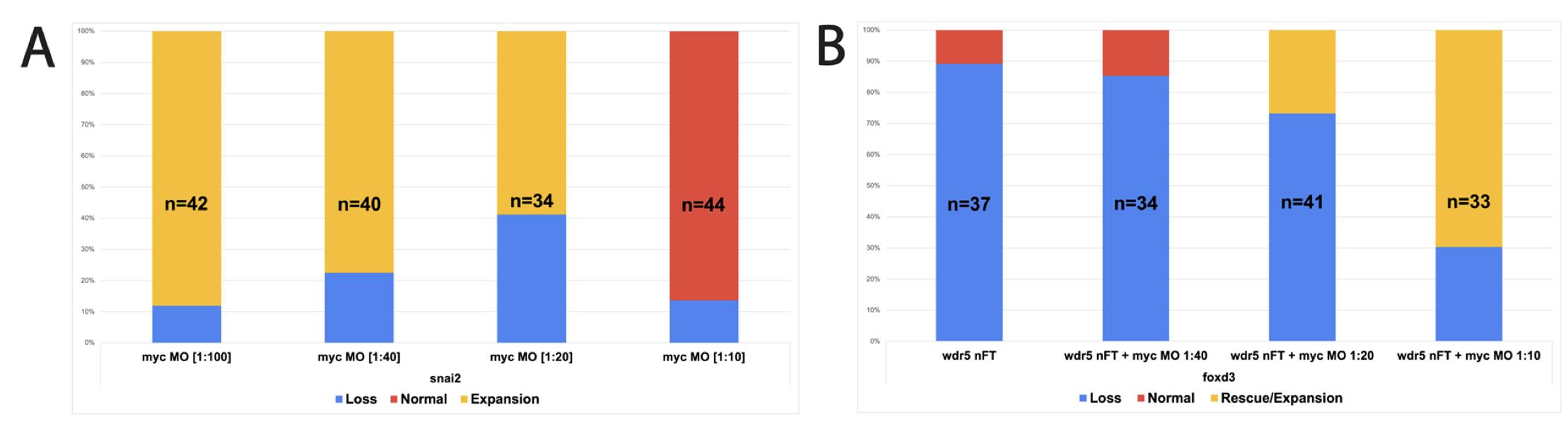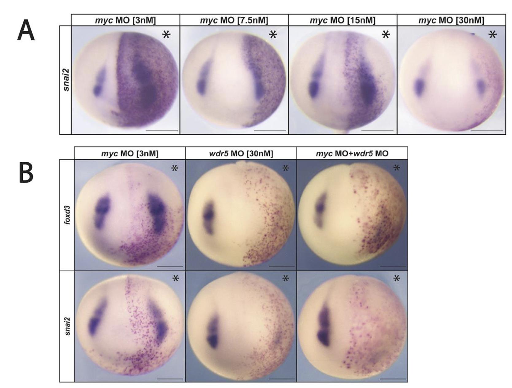 expression. (B) wdr5 is required for myc-morpholino mediated expansion of neural crest gene