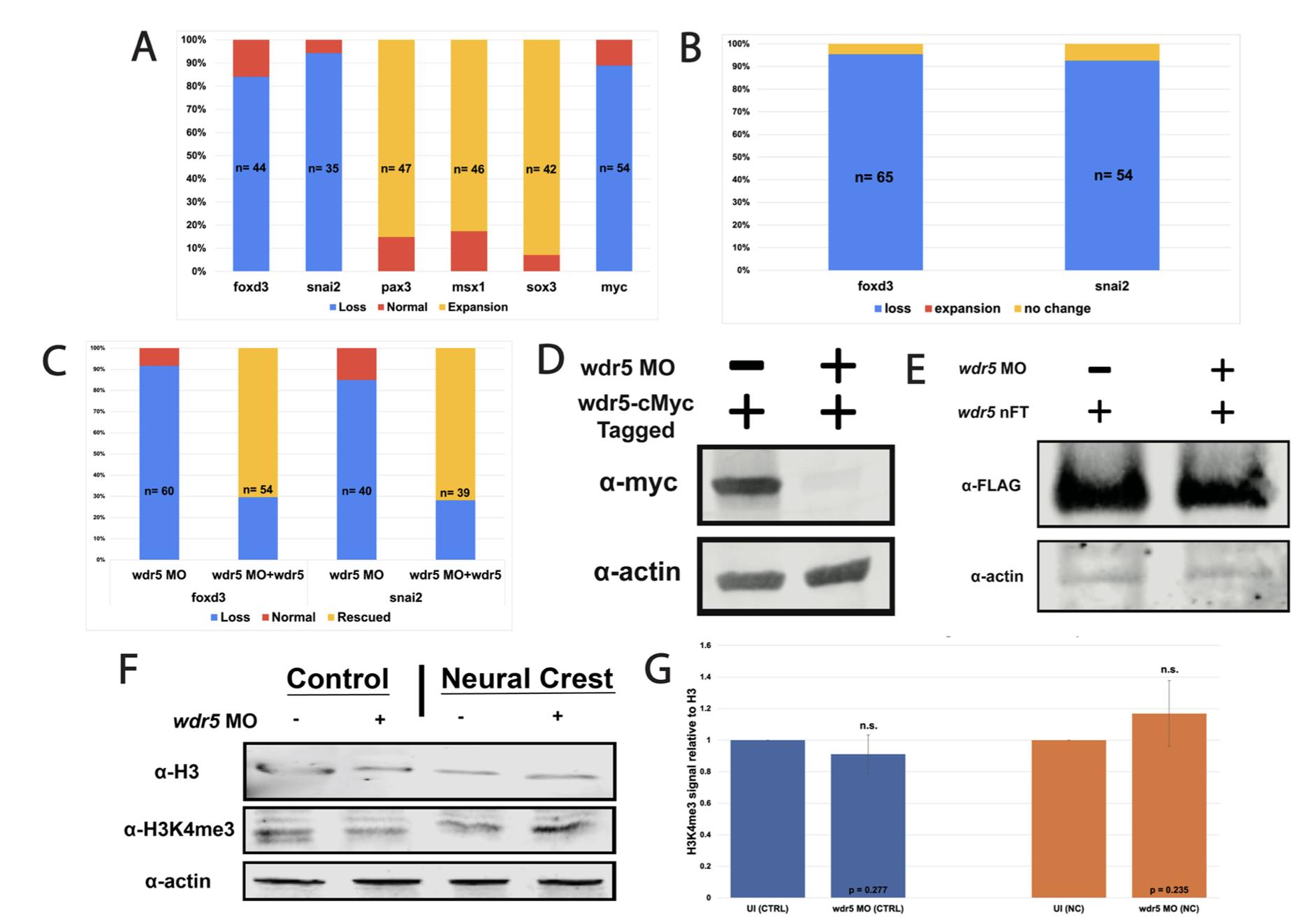 crest caps, with and without wdr5 morpholino. (G) Quantification of global levels of H3K4me3 compared