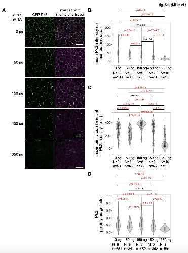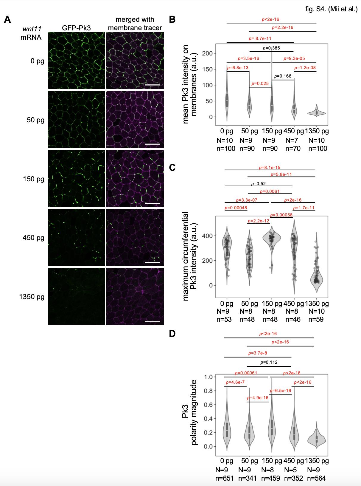 fig. S4. Dose-dependent reduction and biphasic polarization of GFP-Pk3 by co-expressed Wnt11.