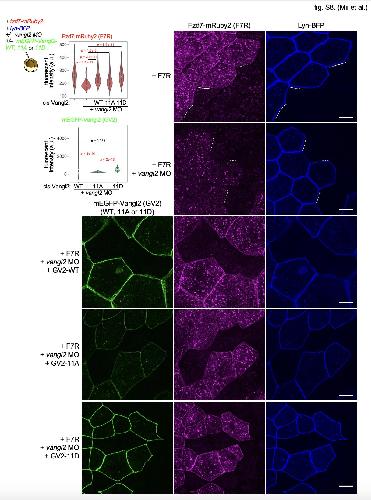 Amounts of mRNAs (ng/embryo): lyn-mEGFP, 0.10; lyn-BFP-3HA, 0.10; GFP-pk3, 0.20; vangl2, 0.10; wnt11-BFP, 1.0. Scale bars, 500 nm. |