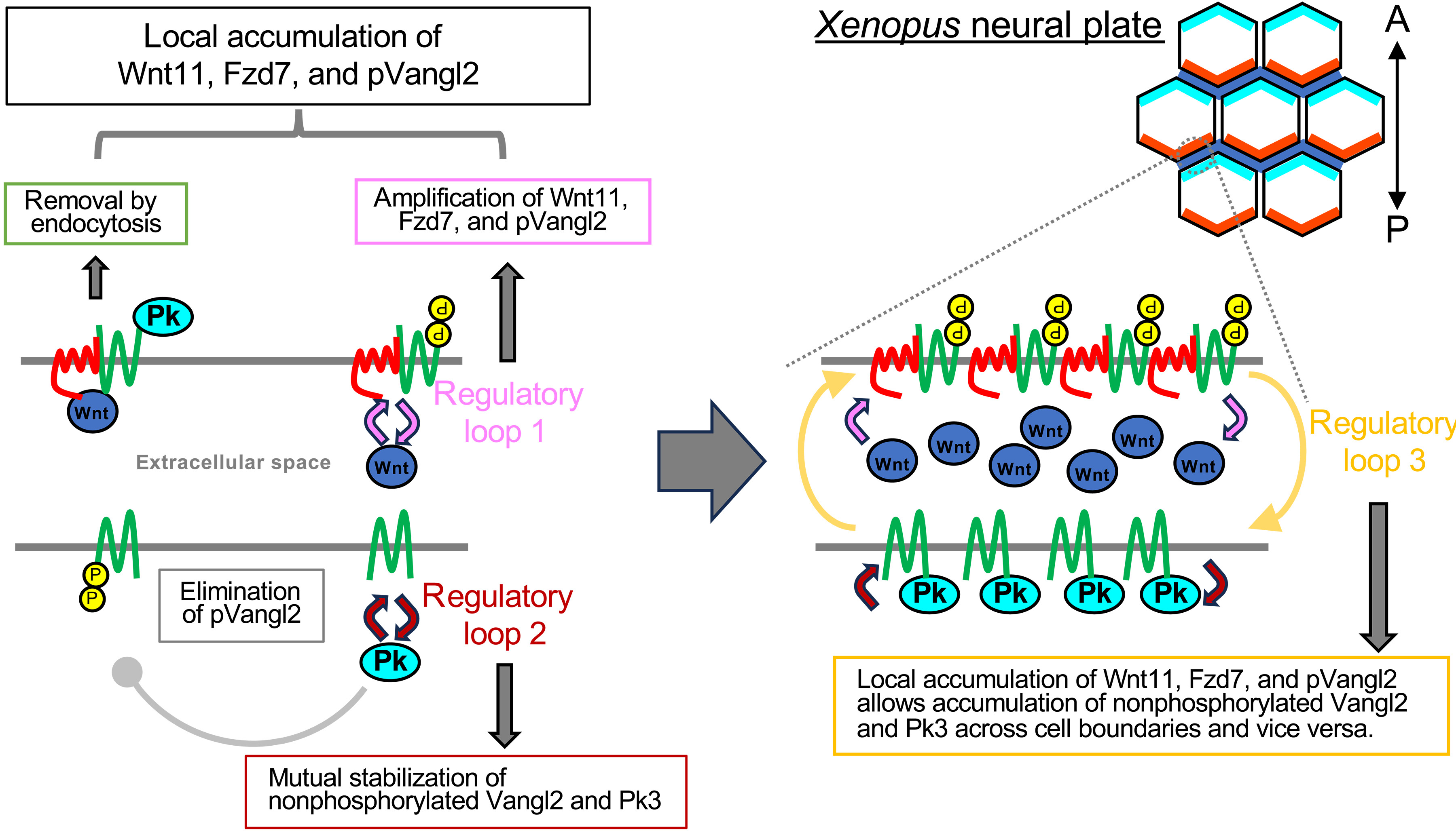 Fig. 4. Reconstitution of cell polarity based on phosphorylated and unphosphorylated states of Vangl2.
