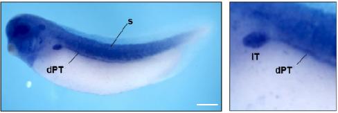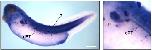 idh2 () gene expression in Xenopus laevis embryo, assayed via in situ hybridization, NF stage [STAGE], lateral view, anterior left, dorsal up.