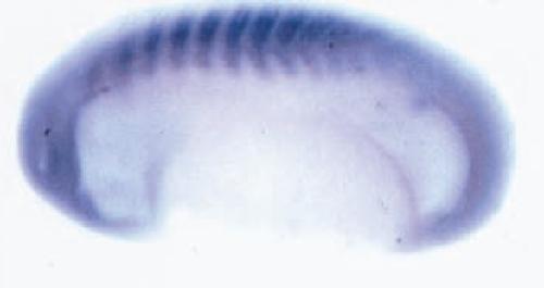kcnab2 (potassium channel, voltage gated subfamily A regulatory beta subunit 2) gene expression in Xenopus laevis embryo, assayed via in situ hybridization, NF stage 24, lateral view, anterior left, dorsal up. This image is extracted from figure published in: Lazaroff MA et al. (1999), Image published in: Lazaroff MA et al. (1999) Copyright © 1999. OA ARTICLE, images redisplayed under a Creative Commons license.