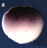 pias4 (protein inhibitor of activated STAT, 4) gene expression in Xenopus laevis embryo, assayed via in situ hybridization, NF stage 6.5 , lateral view, animal pole up.