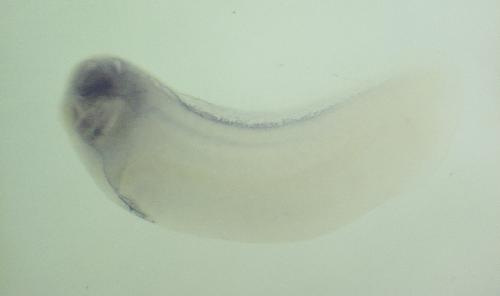 spic (Spi-C transcription factor (Spi-1/PU.1 related)) gene expression in Xenopus laevis embryo, assayed via in situ hybridization, NF stage 30, lateral view, anterior left, dorsal up. Copyright © Patient Lab Image created by: Aldo Ciau-Uitz