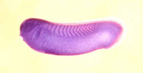 epor (erythropoietin receptor) gene expression in Xenopus laevis embryo, assayed via in situ hybridization, NF stage 30, lateral view, anterior left, dorsal up. Copyright © Patient Lab Image created by: Aldo Ciau-Uitz