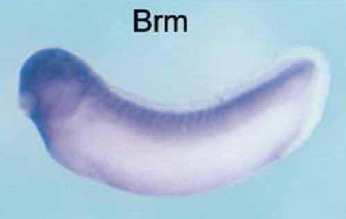 smarca2 (SWI/SNF related, matrix associated, actin dependent regulator of chromatin, subfamily a, member 2 ) gene expression in Xenopus laevis embryo, assayed via in situ hybridization, NF stage 28, lateral view, anterior left, dorsal up.