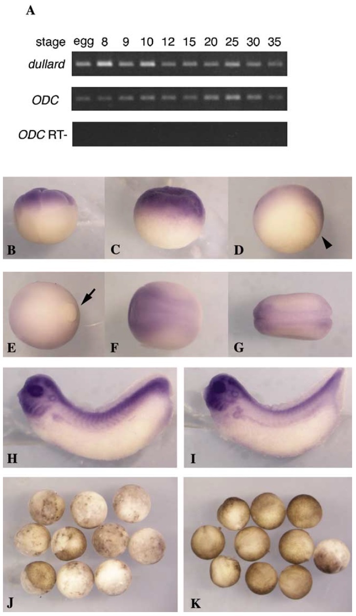 (BâI) Whole mount in situ hybridization analysis of dullard expression.