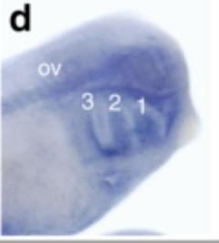 gsk3b (glycogen synthase kinase 3 beta) gene expression in Xenopus laevis embryo, assayed via in situ hybridization, NF stage 25, lateral view, anterior right, dorsal up.