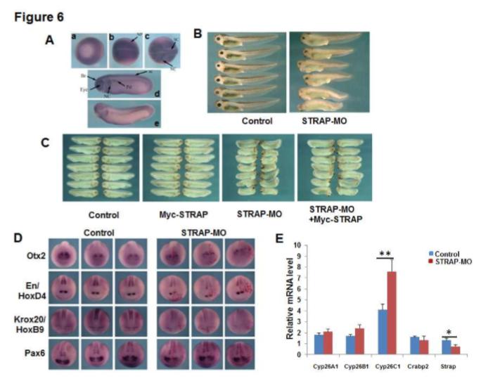 Figure 6. STRAP knockdown influences anteriorâposterior neural patterning and impairs the body axis and eye deâ