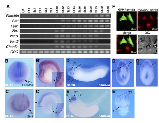 of Fam46a expression. ODC was used as a control. (B-E) Whole-mount in situ