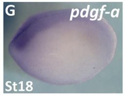 pdgfa (platelet derived growth factor subunit A) gene expression in Xenopus laevis embryo, assayed via in situ hybridization, NF stage 18, lateral view, anterior left, dorsal up. This image is extracted from figure published in: Bahm I et al. Image downloaded from an Open Access article in PubMed Central. © 2017. Published by The Company of Biologists Ltd