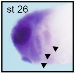 ric8a (RIC8 guanine nucleotide exchange factor A) gene expression in Xenopus tropicalis embryo, assayed via in situ hybridization, NF stage 26, lateral view, anterior left, dorsal up.