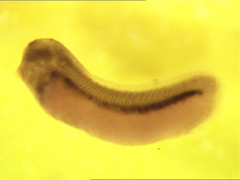 rhobtb1 gene expression in Xenopus laevis, NF stage 28 embryo, in situ hybridization, lateral view, anterior left. Copyrighted by Pollet, Nicolas