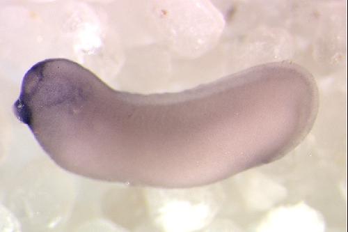 loc733461 (uncharacterized LOC733461) gene expression in Xenopus laevis embryo via in situ hybridization, NF stage 28, lateral view, anterior left.