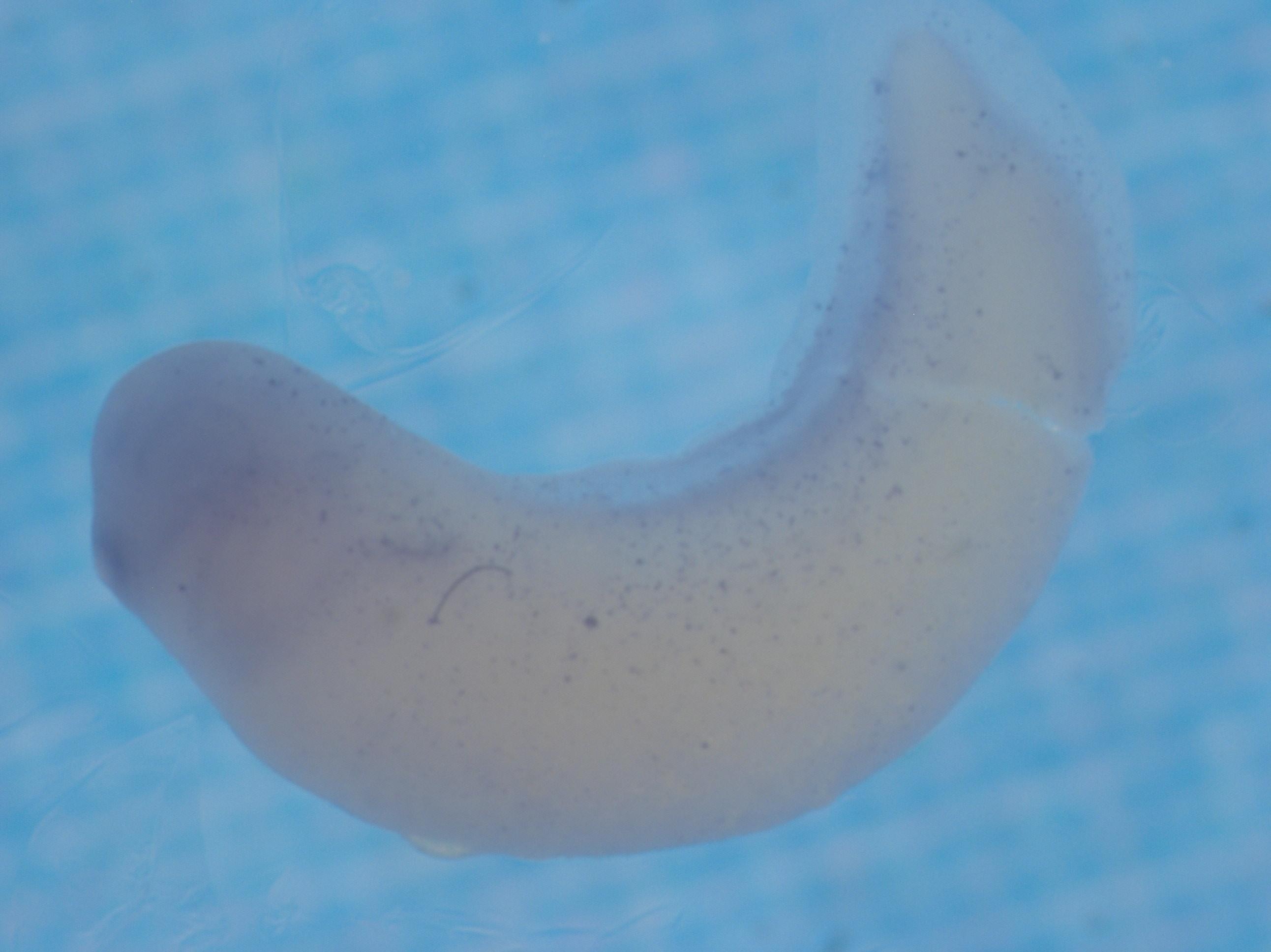 elf1 (E74-like factor 1 (ets domain transcription factor)) gene expression in Xenopus laevis embryo via in situ hybridization, NF stage 29 & 30, lateral view, anterior left, dorsal up.