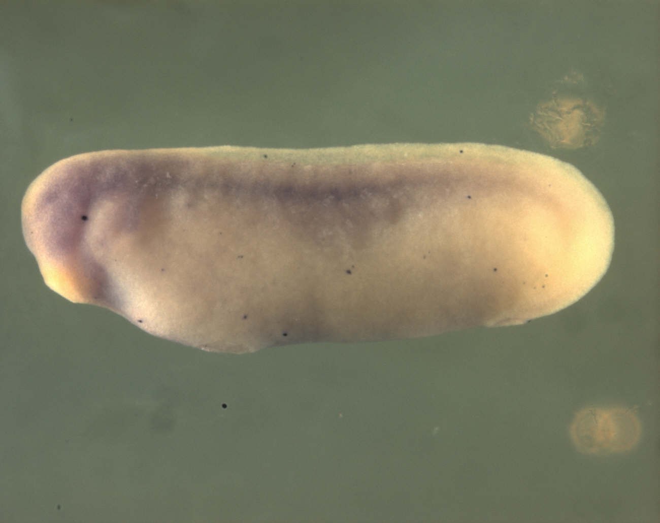 tubgcp4 (tubulin gamma complex component 4) gene expression in a X. laevis embryo, NF stage 26, assayed via in situ hybridization , lateral view , anterior left cordial up.