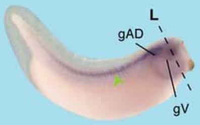 shank1 ( SH3 and multiple ankyrin repeat domains 1 ) gene expression in Xenopus laevis embryos, NF stage 35, as assayed by in situ hybridization. Lateral view: anterior right, dorsal up.