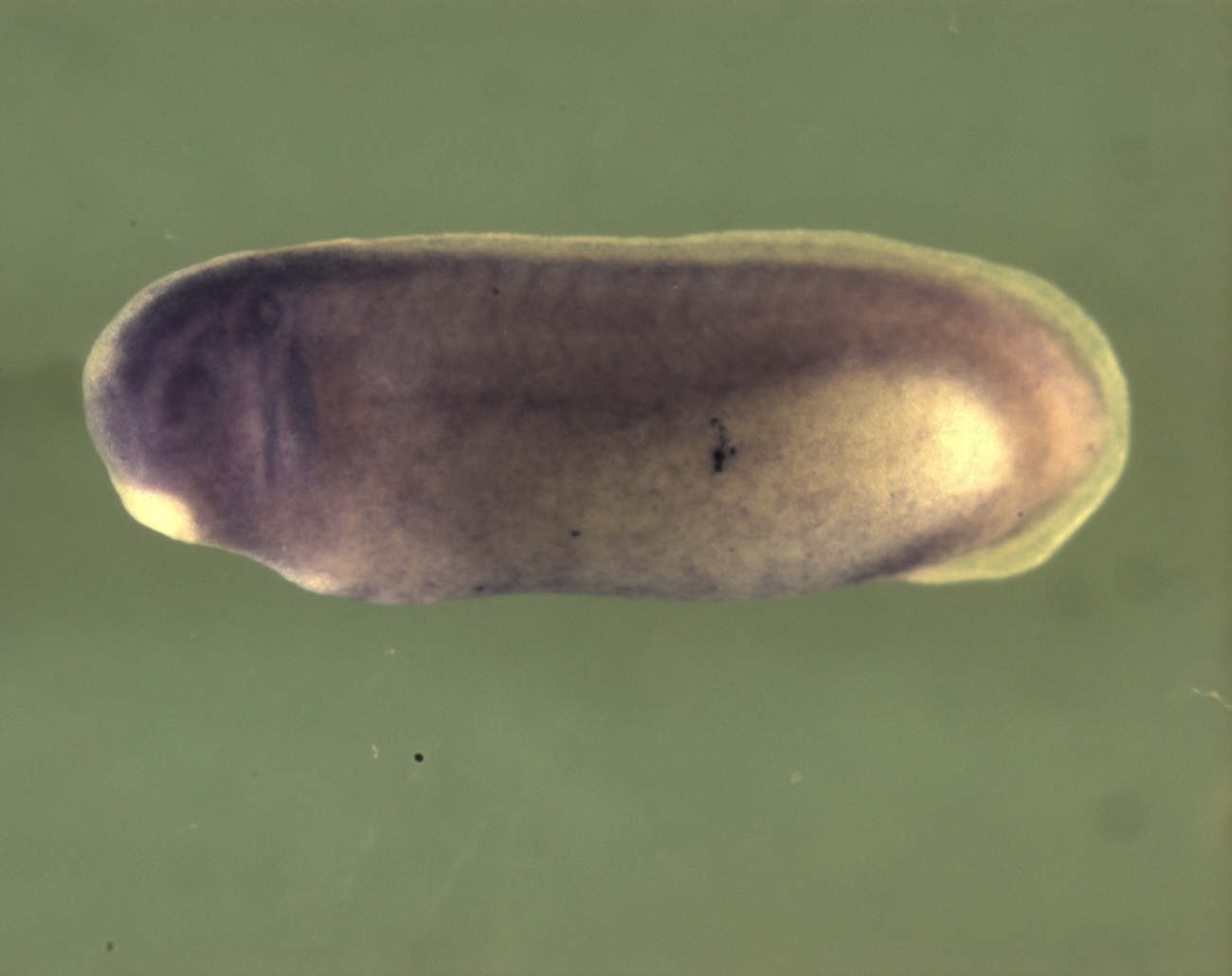 gpd1l (glycerol-3-phosphate dehydrogenase 1 like) gene expressionin Xenopus laevis embryo, assayed via in situ hybridization, NF stage 22, lateral view, anterior left, dorsal up. Copyright © XDB3, Naoto Ueno Image published in: NIBB XDB3 (Probe Pages), NIBB XDB3 Images
