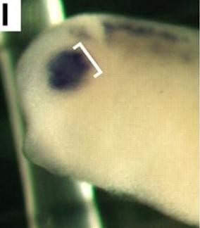 C8orf46 ( chromosome 8 open reading frame 46 ) gene expression in Xenopus laevis embryos, NF stage 33, as assayed by in situ hybridization. Lateral view: anterior left, dorsal up. This image is extracted from figure published in: Agathocleous M et al. (2009), Image published in: Agathocleous M et al. (2009) Copyright © 2009. Image reproduced with permission of the Publisher and the copyright holder. This is an Open Access article distributed under the terms of the Creative Commons Attribution License.