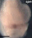 cpn1 (carboxypeptidase N, polypeptide 1) gene expression in a Xenopus laevis embryo, NF stage 24, assayed by in situ hybridization, anterior view, dorsal up. This image is extracted from figure published in: Dickinson AJ and Sive HL (2009), Image published in: Dickinson AJ and Sive HL (2009) Copyright © 2009. Image reproduced with permission of the Publisher and the copyright holder. This is an Open Access article distributed under the terms of the Creative Commons Attribution License.