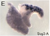 scg3 (secretogranin III ) gene expression in dissected Xenopus laevis gut, NF stage 41, as assayed by in situ hybridization, lateral view, anterior left, dorsal up. This image is extracted from figure published in: Jarikji Z et al. (2009), Image published in: Jarikji Z et al. (2009) Copyright © 2009. Image reproduced with permission of the Publisher and the copyright holder. This is an Open Access article distributed under the terms of the Creative Commons Attribution License.