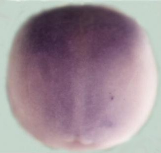 suz12 (SUZ12 polycomb repressive complex 2 subunit) gene expression in Xenopus laevis embryos, NF stage 15, as assayed by in situ hybridization. Dorsal view: anterior up. This image is extracted from figure published in: Aldiri I and Vetter ML (2009), Image published in: Aldiri I and Vetter ML (2009) Copyright © 2009. Image reproduced with permission of the Publisher, John Wiley & Sons.