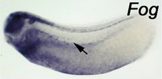 zfpm1 (zinc finger protein, FOG family member 1) gene expression in Xenopus laevis embryo, assayed via in situ hybridization, NF stage 26, lateral view, anterior left, dorsal up. The position of the dorsal lateral plate mesoderm is indicated by the arrow. Image published in: Ciau-Uitz A et al. (2013) Copyright © 2013. Image reproduced with permission of the Publisher and the copyright holder. This is an Open Access article distributed under the terms of the Creative Commons Attribution License.