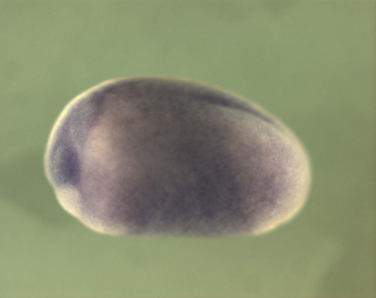 tcf4 (transcription factor 4 ) gene expression in Xenopus laevis embryo via in situ hybridization, NF stage 20, lateral view, anterior left, dorsal up.