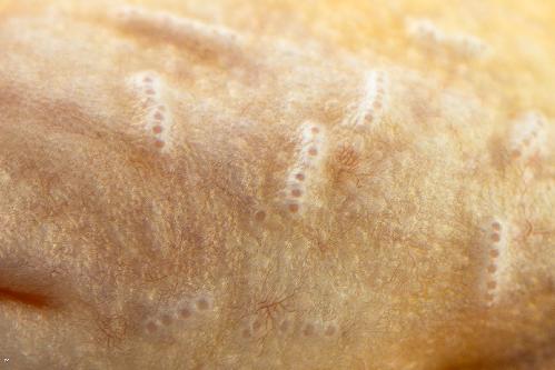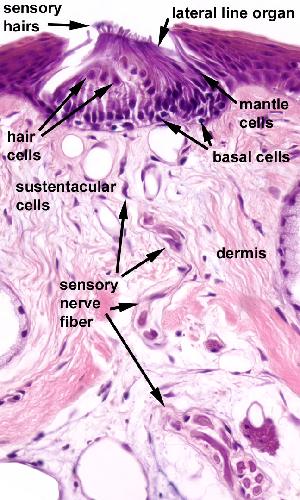 Definition: "Any of the sense organs that detect vibrations carried through water. They develop from a specialized series of dorsolateral ectodermal placodes named lateral line placodes."
