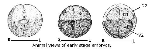 "The blastomere of the future right side of the embryo at the 2-cell stage."