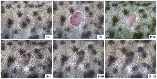 Skin regeneration in adult axolotls: a blueprint for scar-free healing in vertebrates., Seifert AW, Monaghan JR, Voss SR, Maden M., PLoS One. January 1, 2012; 7 (4): e32875.