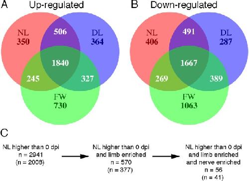 Gene expression patterns specific to the regenerating limb of the Mexican axolotl., Monaghan JR, Athippozhy A, Seifert AW, Putta S, Stromberg AJ, Maden M, Gardiner DM, Voss SR., Biol Open. July 15, 2012; 1 (10): 937-48.