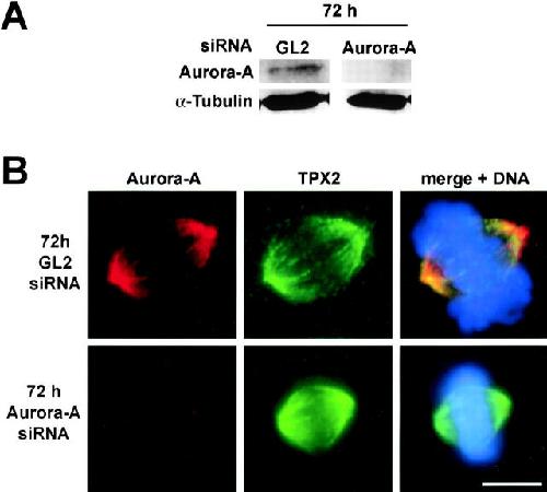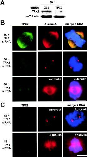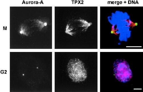 Human TPX2 is required for targeting Aurora-A kinase to the spindle., Kufer TA, Silljé HH, Körner R, Gruss OJ, Meraldi P, Nigg EA., J Cell Biol. August 19, 2002; 158 (4): 617-23. |