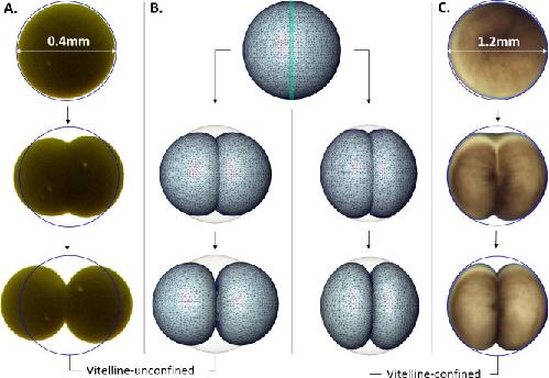 On the embryonic cell division beyond the contractile ring mechanism: experimental and computational investigation of effects of vitelline confinement, temperature and egg size., Gladilin E, Eils R, Peshkin L., PeerJ. December 10, 2015; 3 e1490. |